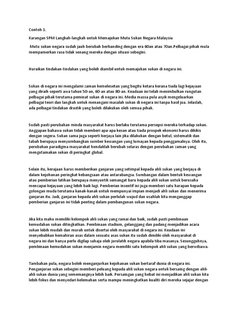 Pelajar diwajib menyertai sukan dalam peringkat sekolah kerana sukan mempunyai banyak kebaikan kepentingan sukan karangan. Contoh karangan bahagian b spm 2017 2 april 1 .